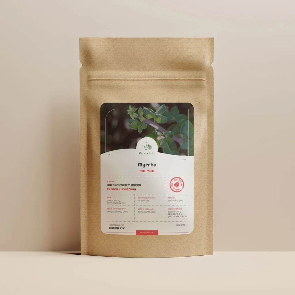 Mo Yao (Myrrha, mirra) to zioło TCM poruszające krew, łagodzące ból i rozpraszające zastoje. Stosowane przy bólach pourazowych, menstruacyjnych, obrzękach, stwardnieniach i napięciu. Wspiera regenerację tkanek, działa przeciwzapalnie i harmonizuje Qi. Polecane przy blokadzie krążenia w meridianach i tkankach głębokich. Podawane jako odwar, proszek lub składnik maści i receptur na bóle z komponentą krążeniową, zastojem i ograniczeniem ruchomości.
