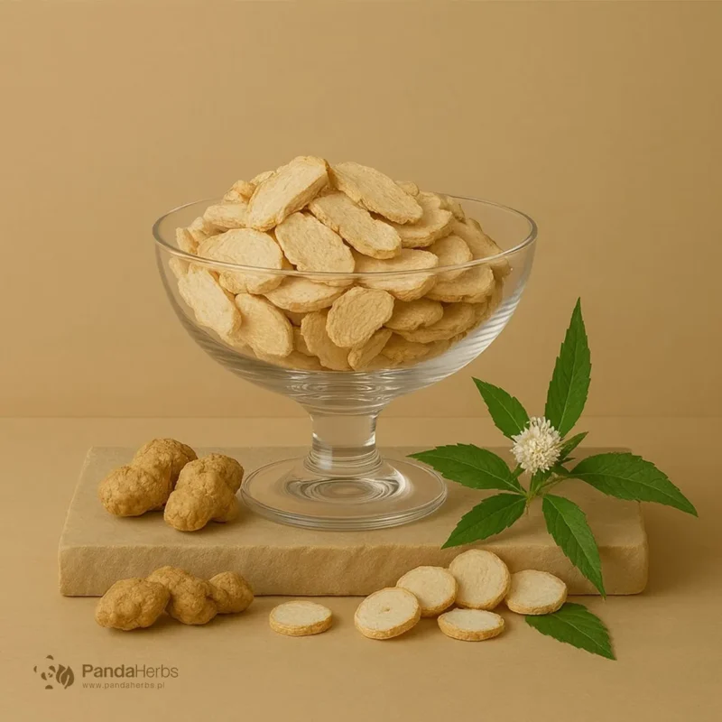 Podsumowanie: Cang Zhu działa silnie osuszająco, poprawia trawienie i sprawdza się w schorzeniach przebiegających z nadmiarem wilgoci – zarówno w układzie pokarmowym, jak i ruchu.
