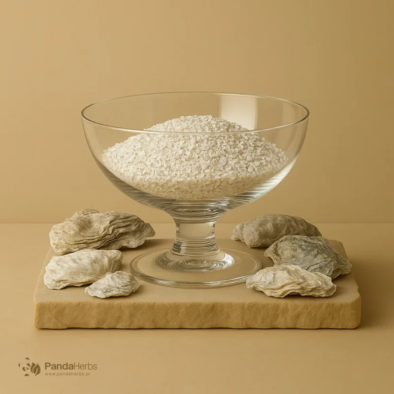 Muszla ostrygi to bogate źródło wapnia w postaci węglanu, wzbogaconego o magnez, krzem i pierwiastki śladowe istotne dla metabolizmu kostnego. Biodostępność wapnia z muszli jest niższa niż z suplementów chelowanych, lecz długi odwar może zwiększać rozpuszczalność.