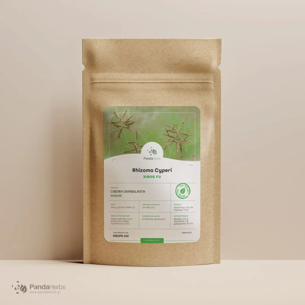 Cibora okrąglasta (Xiang Fu) to jedno z najważniejszych ziół tradycyjnej medycyny chińskiej na zastój energii — stosowane przy bólach brzucha, wzdęciach, napięciu przedmiesiączkowym, bolesnych miesiączkach i uczuciu ucisku w klatce piersiowej. Kłącze Cyperus rotundus zawiera olejki eteryczne bogate w cyperony, o potwierdzonym działaniu rozkurczowym, przeciwzapalnym i łagodzącym dolegliwości żołądkowo-jelitowe. W tradycji chińskiej Xiang Fu jest uważany za naczelne zioło usuwające zastój Qi, ze szczególnym powinowactwem do dolegliwości ginekologicznych.