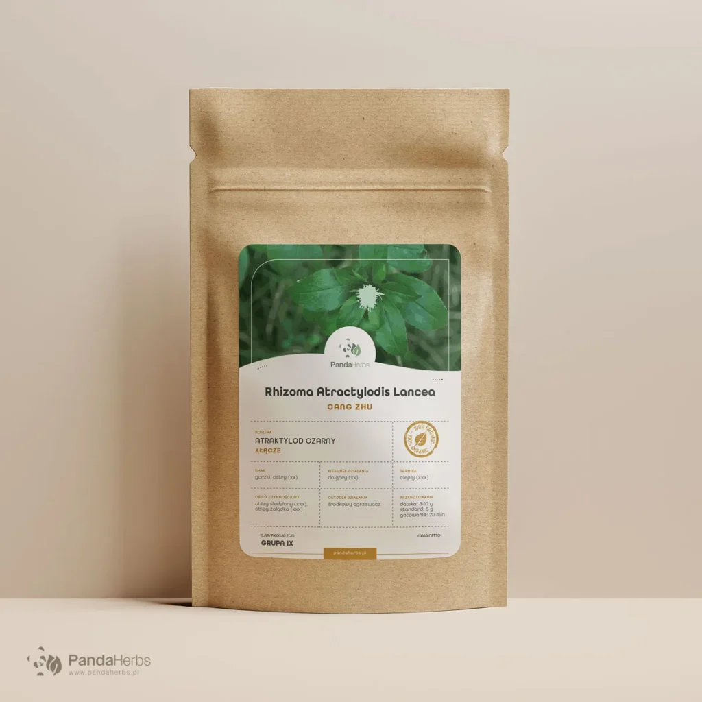 Atraktylod czarny (Cang Zhu) to zioło dla osób zmagających się z przewlekłymi problemami trawiennymi — uczuciem ciężkości po posiłku, wzdęciami, luźnymi stolcami i brakiem apetytu. Może wspierać również komfort stawów przy dolegliwościach reumatycznych i porannej sztywności. W tradycyjnej medycynie chińskiej kłącze Atractylodes lancea to jeden z najważniejszych surowców osuszających wewnętrzną wilgoć i ocieplających środkowy ogrzewacz — główny ośrodek odpowiedzialny za transformację pokarmów i płynów w organizmie.