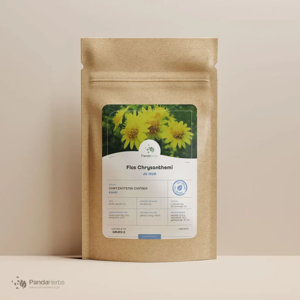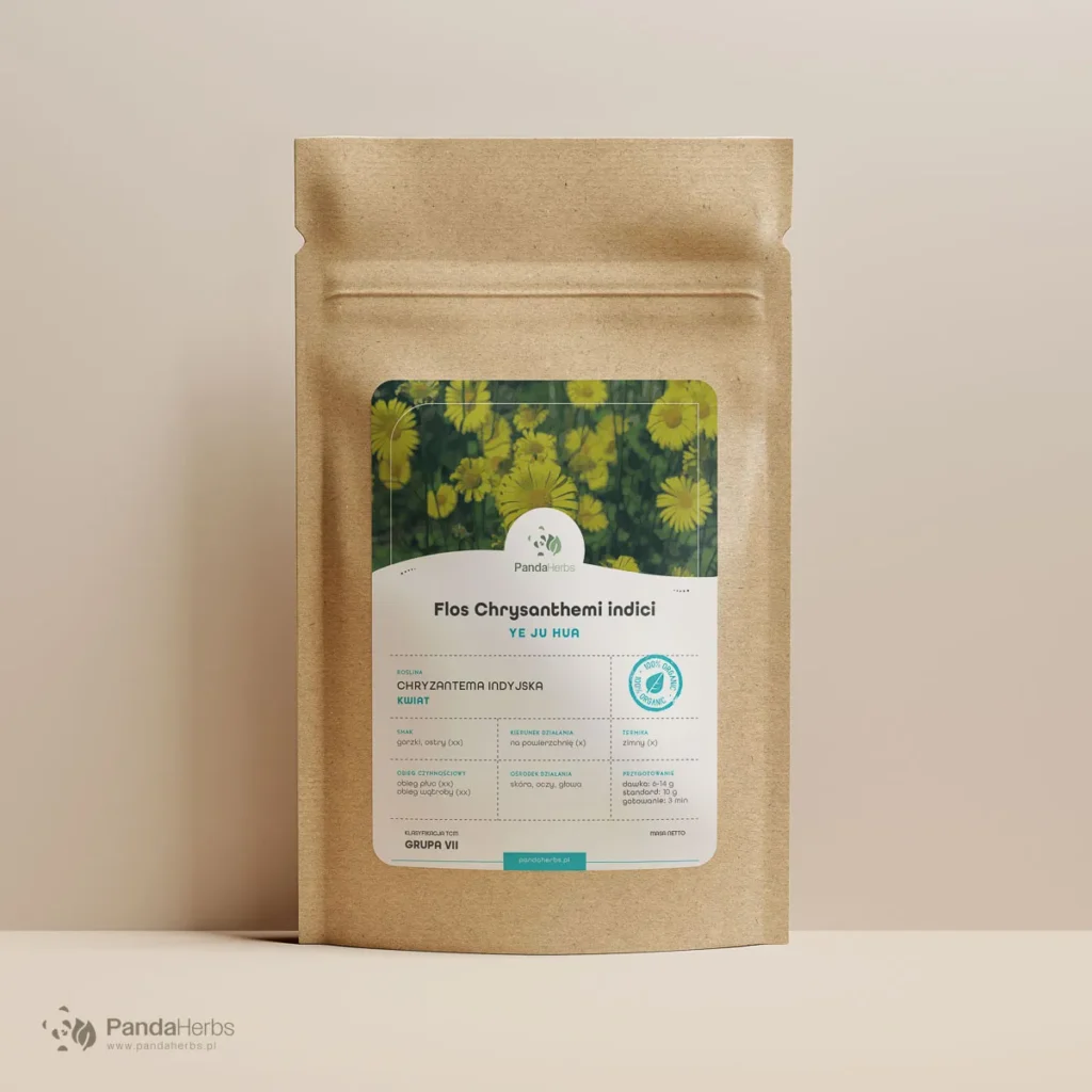 Kwiat chryzantemy chińskiej (Ju Hua) to jedno z najczęściej wybieranych ziół przez osoby zmagające się z bólami i zawrotami głowy, zmęczonymi i zaczerwienionymi oczami czy podwyższonym ciśnieniem tętniczym. W tradycyjnej medycynie chińskiej ceniony za zdolność rozpraszania wiatru i gorąca oraz kojenia obiegu wątroby. Badania potwierdzają obecność flawonoidów i olejków eterycznych o właściwościach naczyniorozszerzających i przeciwbakteryjnych w kwiatach Chrysanthemum × morifolium.
