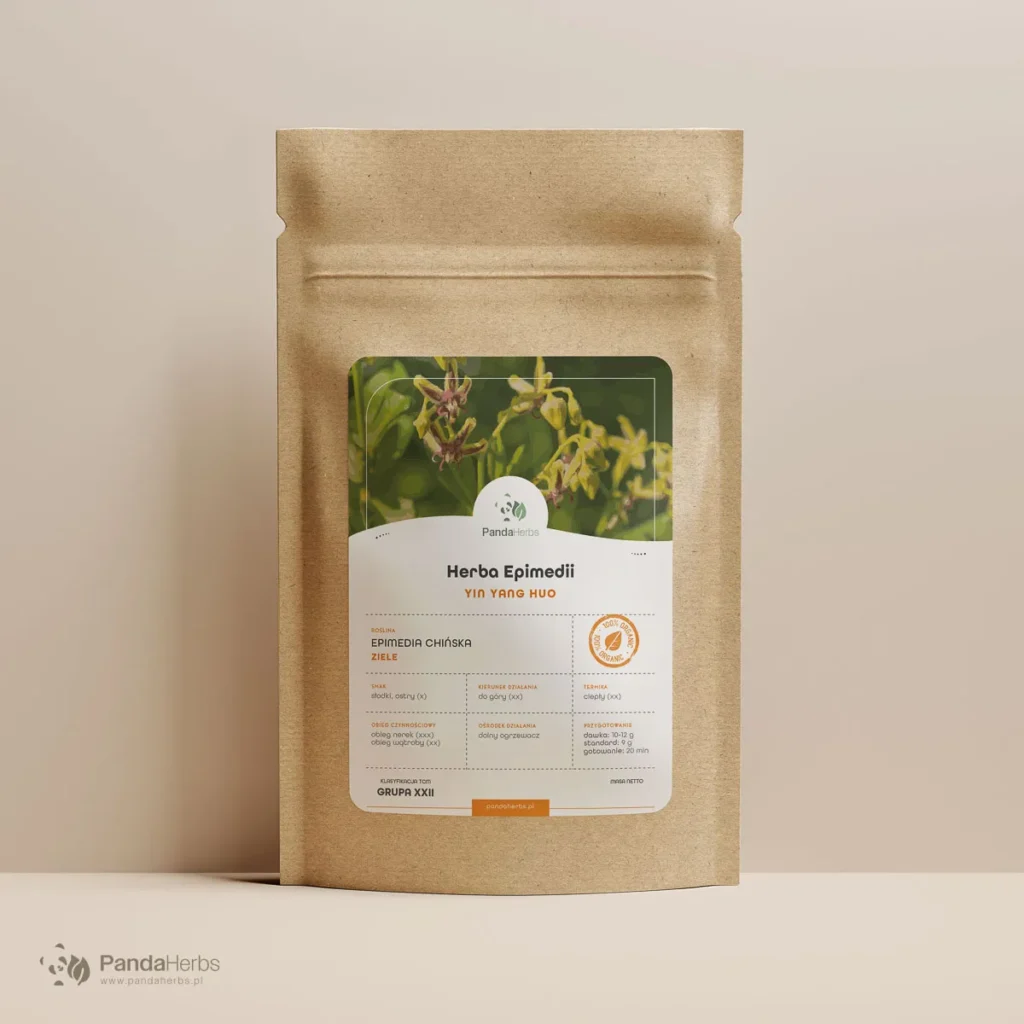 Epimedia chińska (Yin Yang Huo) to jedno z najważniejszych ziół stosowanych przy spadku libido i witalności, bólach lędźwi i kolan, osłabieniu odporności, a także przy dolegliwościach menopauzalnych — uderzeniach gorąca, bezsenności i wahaniach ciśnienia. Ikaryna, główny flawonoid Epimedium brevicornum, wykazuje w badaniach działanie wspomagające funkcje hormonalne i regulujące ciśnienie tętnicze. W TCM to klasyczny surowiec rozgrzewający Yang nerek i uwalniający meridiany od zimnej wilgotności.